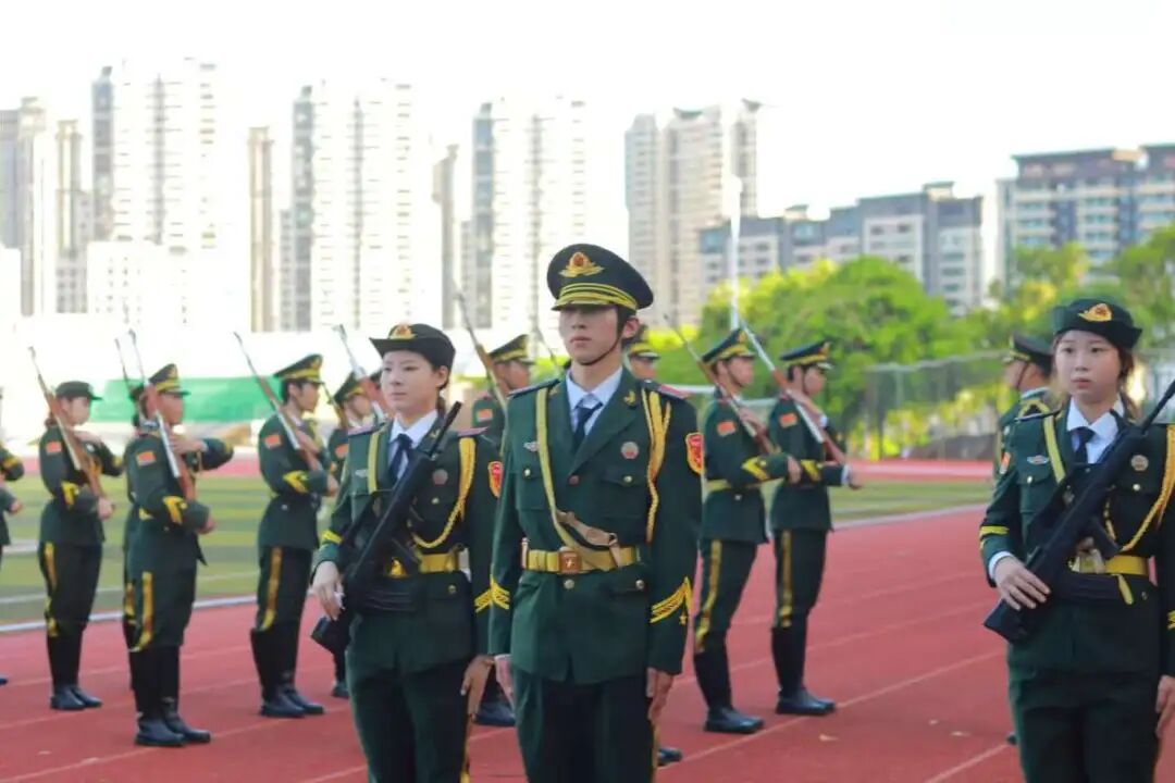 伴着朝阳,国旗护卫队迈着铿锵步伐护送五星红旗入场。在庄严的《义勇军进行曲》中,鲜艳的国旗冉冉升起。全体师生肃立凝视,目光中饱含对祖国的无限热爱。这一刻,晨光与国旗交相辉映,肃穆与深情融汇交织,澎湃的爱国热情与深厚的历史情怀在每个人心中激荡。