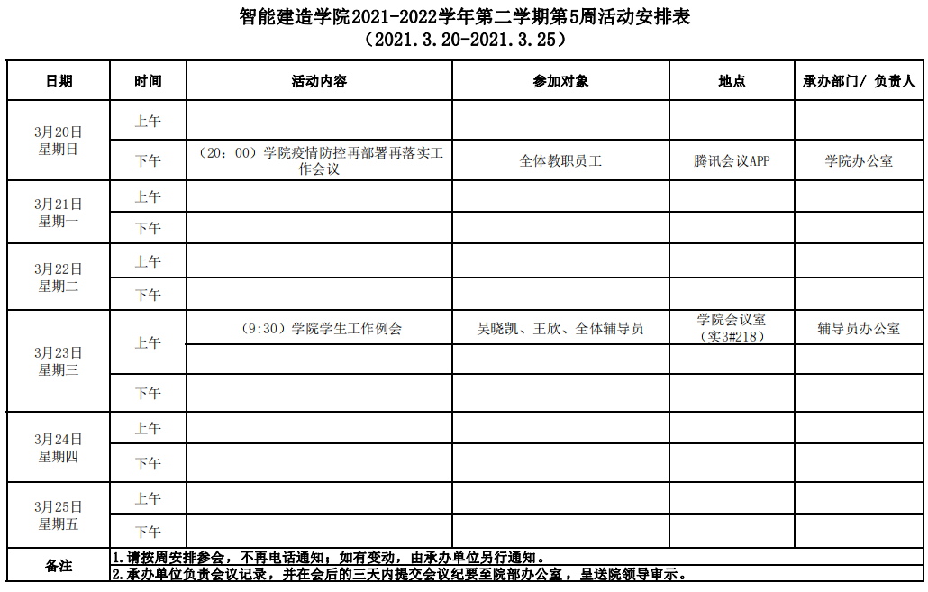 智能建造学院2021-2022学年第二学期第5周活动安排表