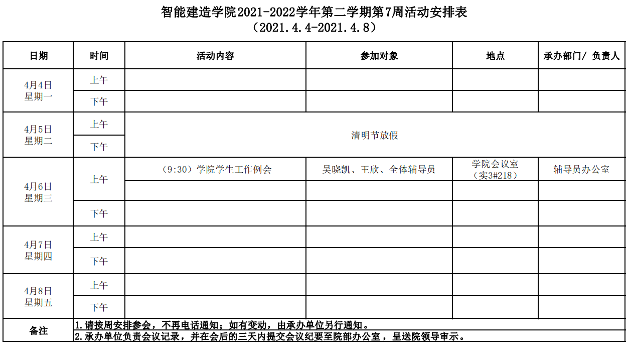 智能建造学院2021-2022学年第二学期第7周活动安排表