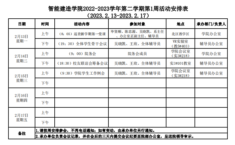 智能建造学院2022-2023学年第二学期第1周活动安排表