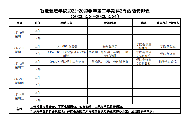 智能建造学院2022-2023学年第二学期第2周活动安排表