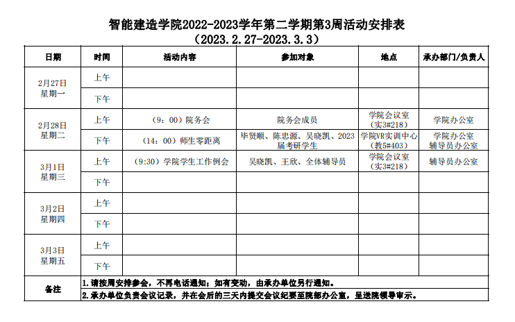 智能建造学院2022-2023学年第二学期第3周活动安排表