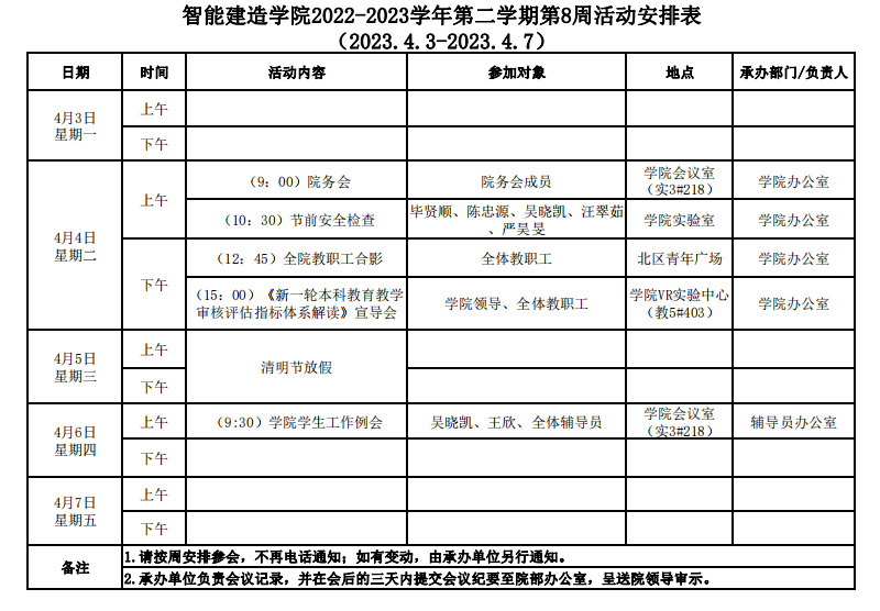 智能建造学院2022-2023学年第二学期第8周活动安排表