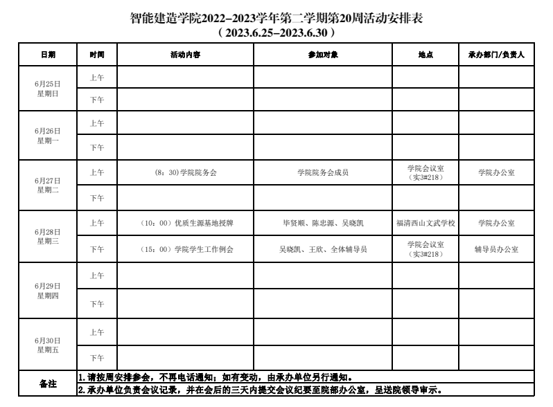 智能建造学院2022-2023学年第二学期第20周活动安排表