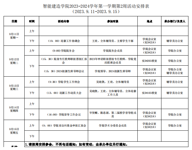 智能建造学院2023-2024学年第一学期第2周活动安排表