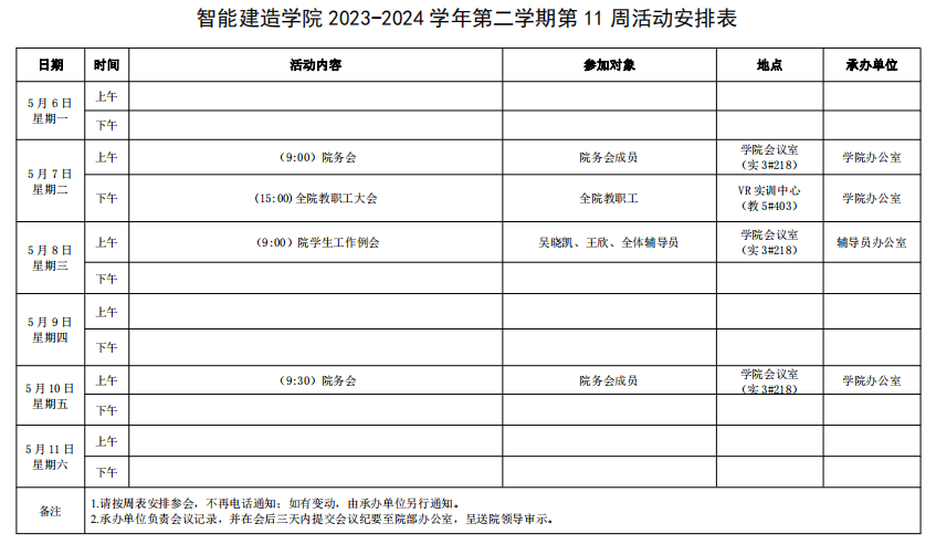 智能建造学院2023-2024学年第二学期第11周活动安排表