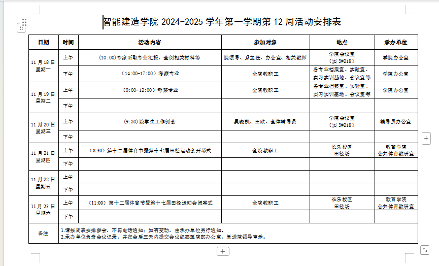智能建造学院2023-2024学年第二学期第12周活动安排表