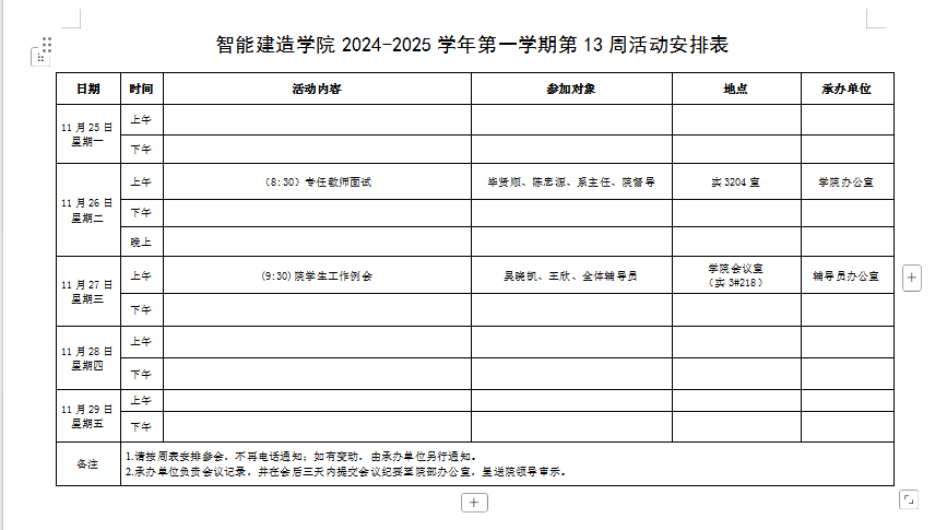 智能建造学院2023-2024学年第二学期第13周活动安排表