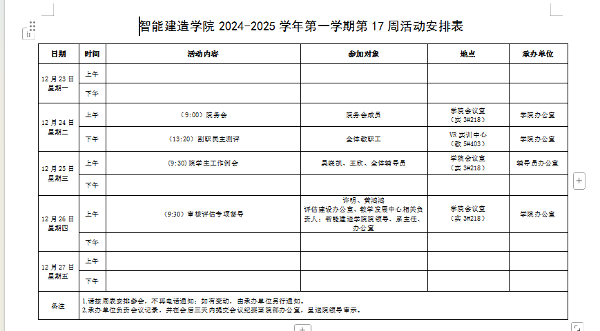 智能建造学院2023-2024学年第二学期第17周活动安排表